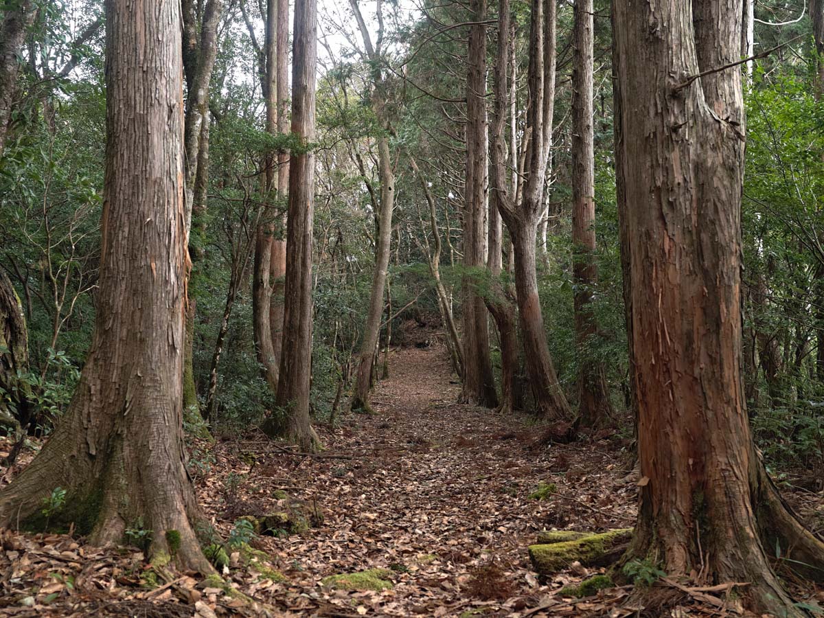 宿屋杉が立つ野根山一帯は、かつて参勤交代の陸路としても利用されたと伝えられる野根山街道沿いに位置しています。この街道沿いには、現在でも往時をしのばせるように杉の巨木が点在し、かつては豊かな天然林が広がっていたことを強く感じさせます。