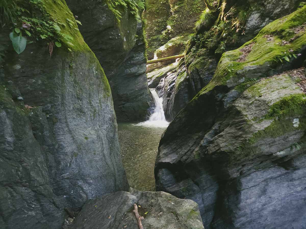 巨大堰堤以降は特徴のない渓相がしばらく続き、下部二俣を通り過ぎたあたりから滝が散発的に現れるようになる。このセクションは小水量ではあるが景観としては悪くない。
