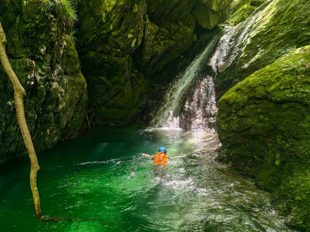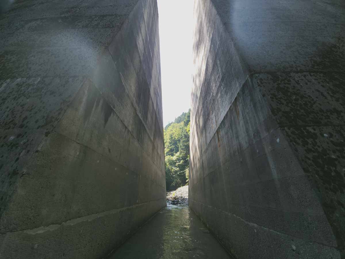 本流の松尾川には岩壁や瀞が繰り返し現れ、崖の中腹につけられた林道から見渡す景色は、辺境の地四国の中でも特に人の気配を感じさせないものだ。谷の規模からすると、沢登り対象となる良渓谷が複数あってもおかしくないが、実際には支流の大半が超小渓谷で、ゲテモノと言わざるを得ない。