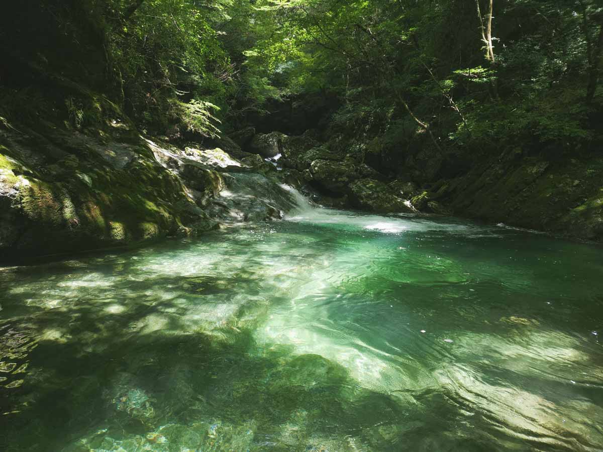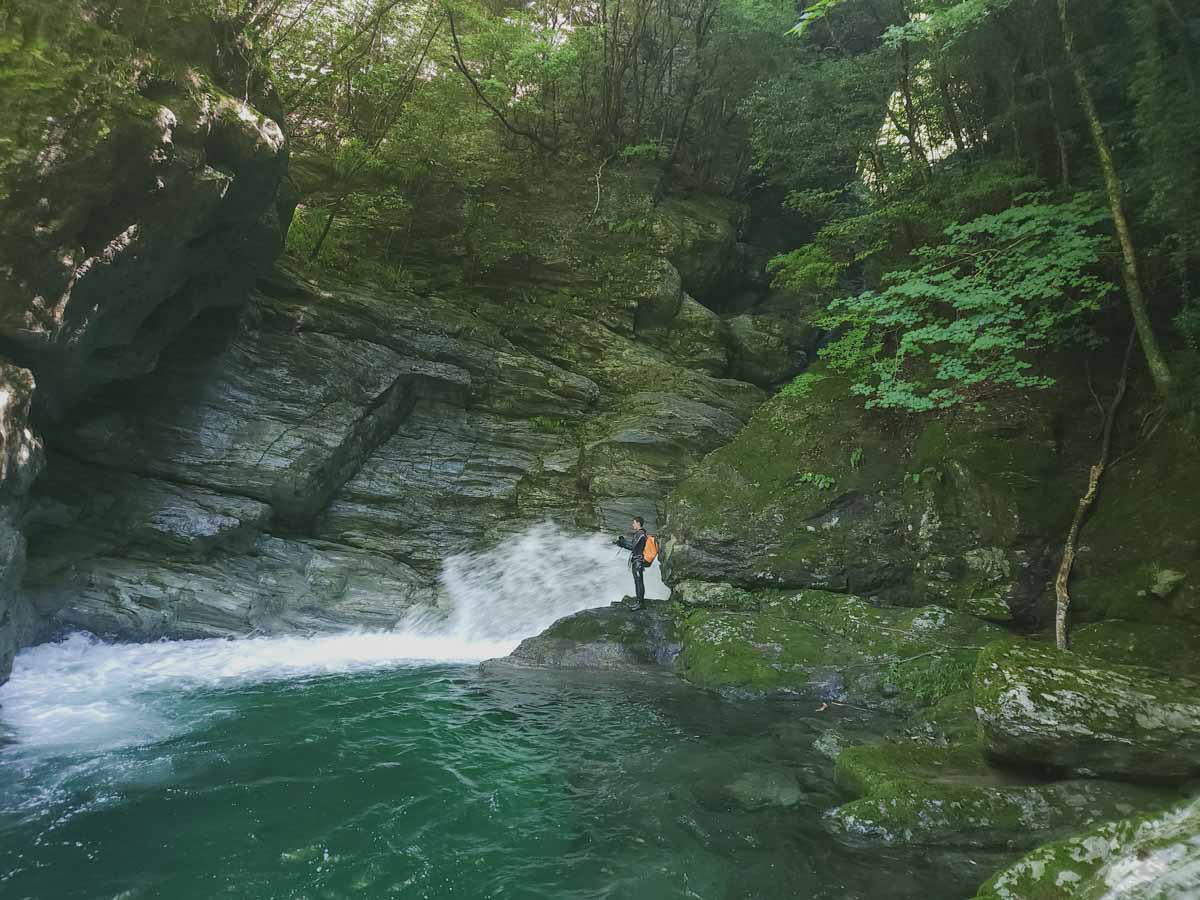 仁淀ブルーで全国に名を馳せ、休日は連日渋滞となる高知の人気観光地「安居渓谷」の支流「弘沢」。有名ガイド本にも掲載され、高知で唯一、沢登りで賑わう渓谷だ。