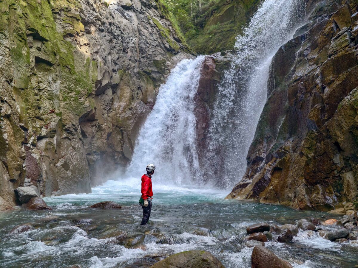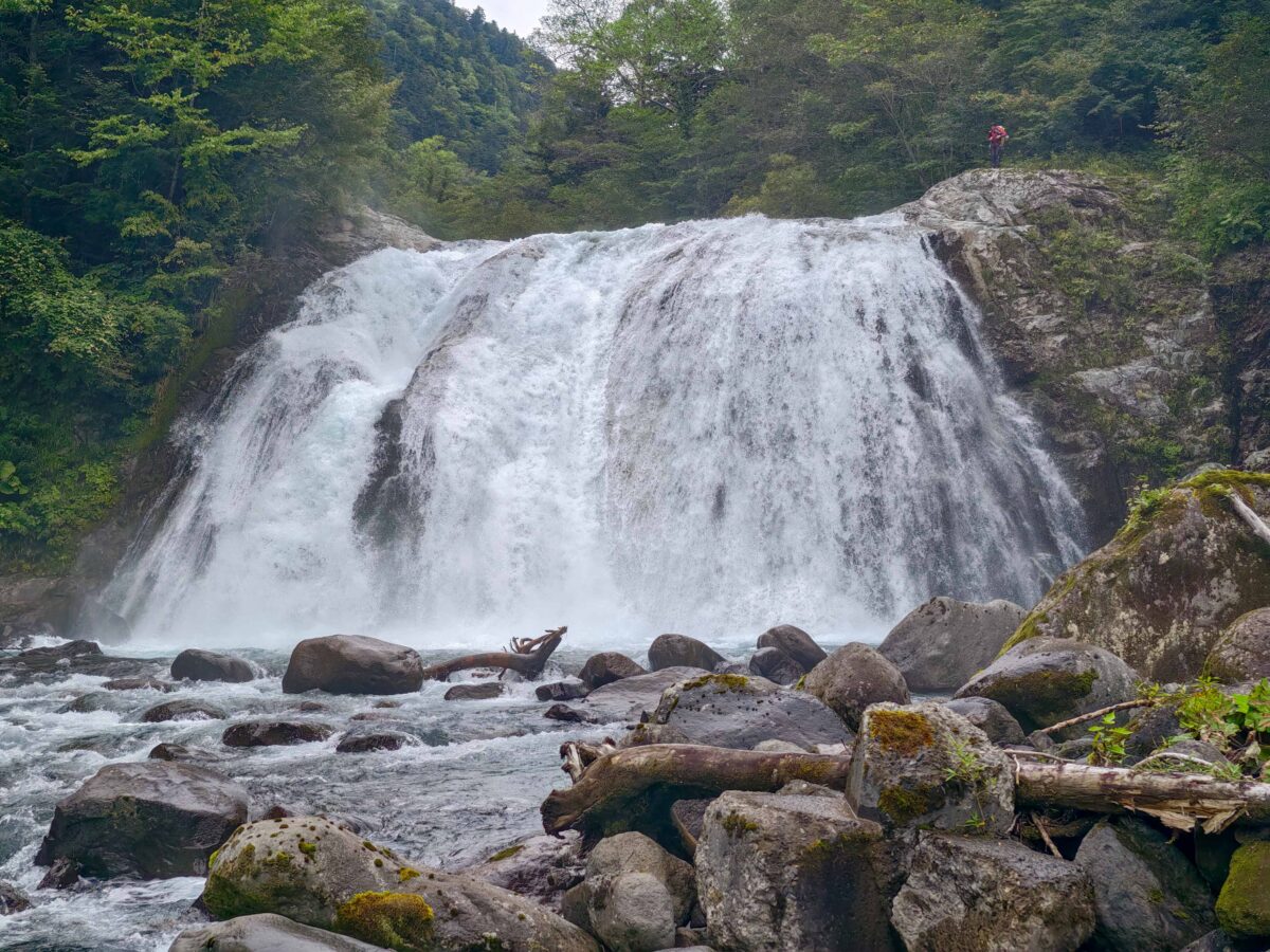 「ここだけでも日本有数だね、水量やばいし」「まだまだこれからですよ、少し先で合流する融雪沢はこれの1.5倍水量があるんで」