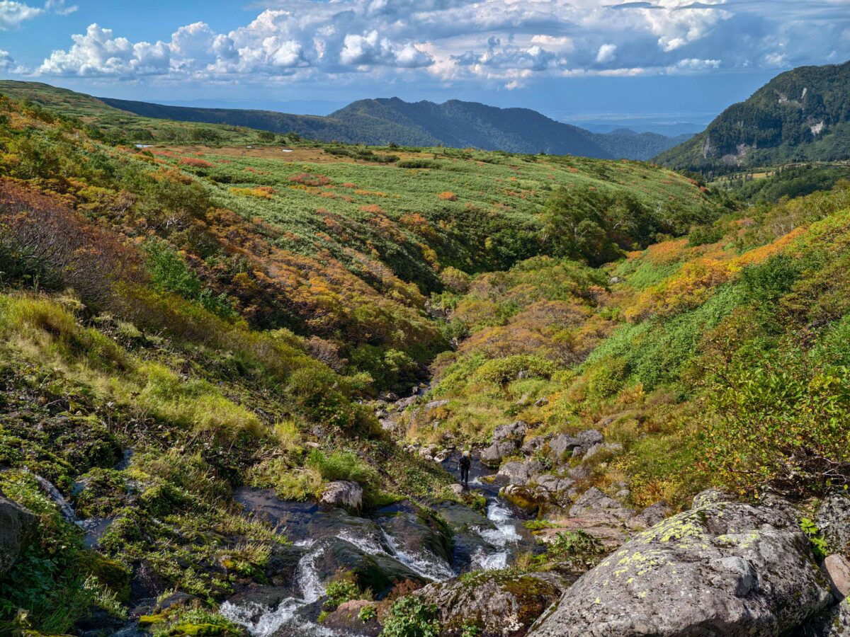 日本一の滑床を歩いていくと次第に水流は細くなり、源頭へと至る。最後まで藪漕ぎがなく稜線に突き上がるのは大雪山系の沢の特徴だろう。最後まで爽快な渓谷だった。
