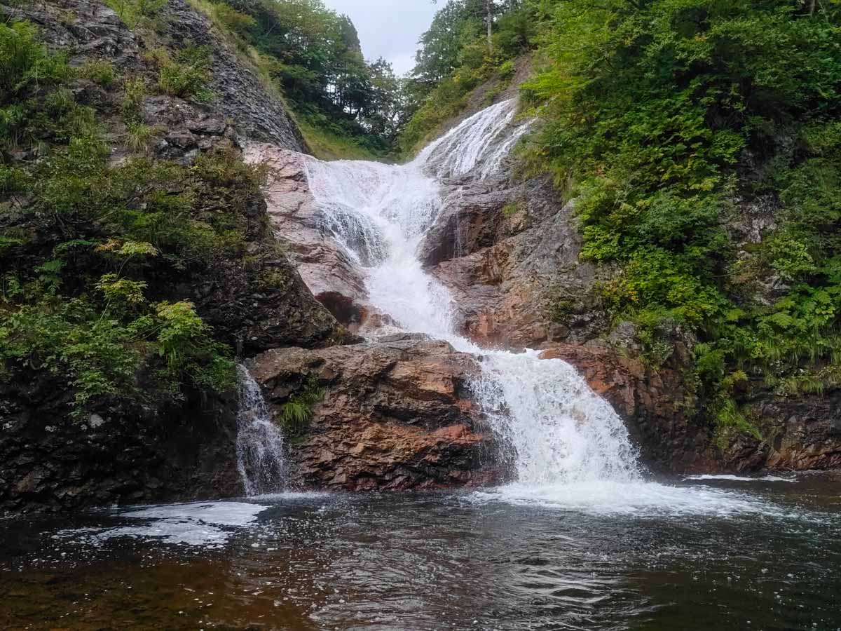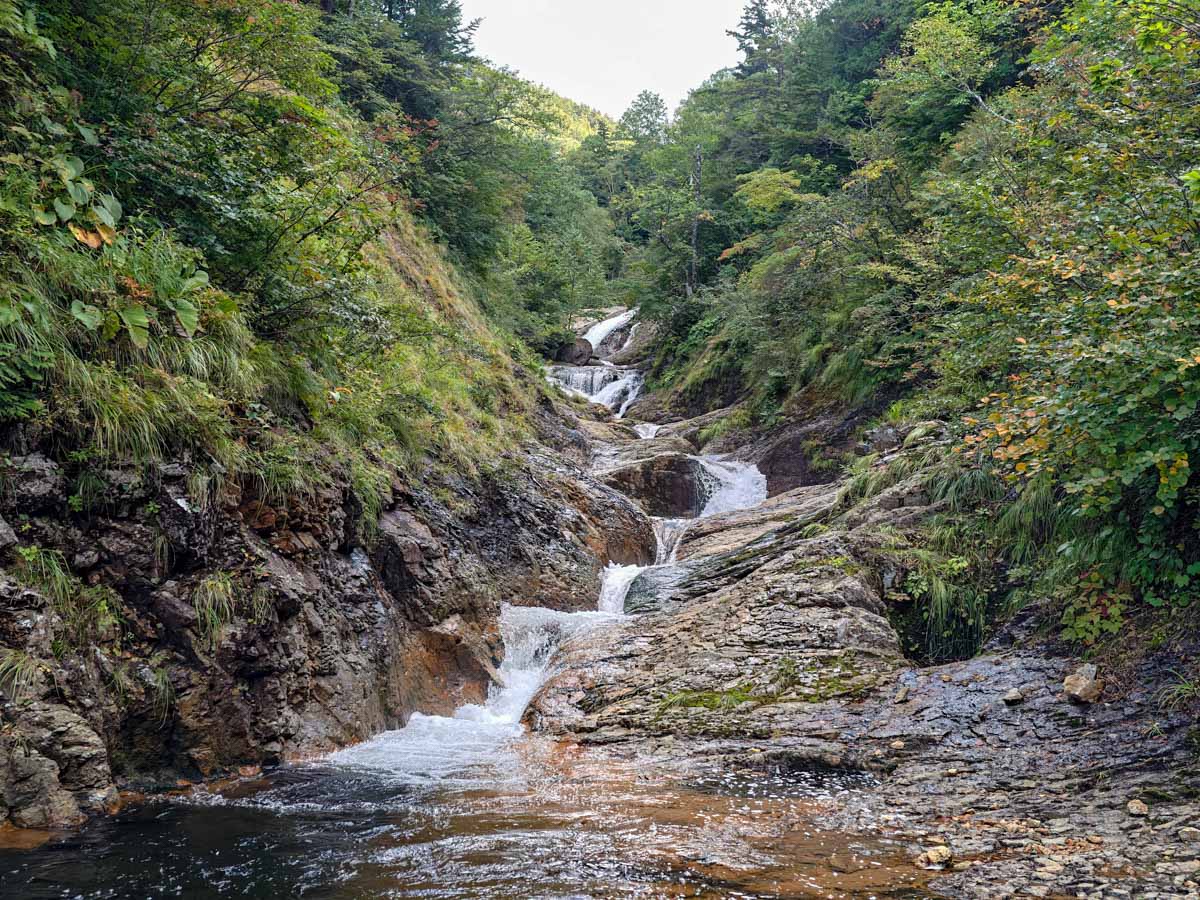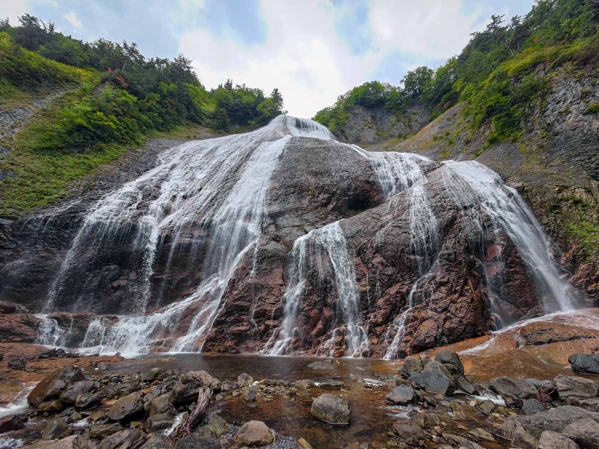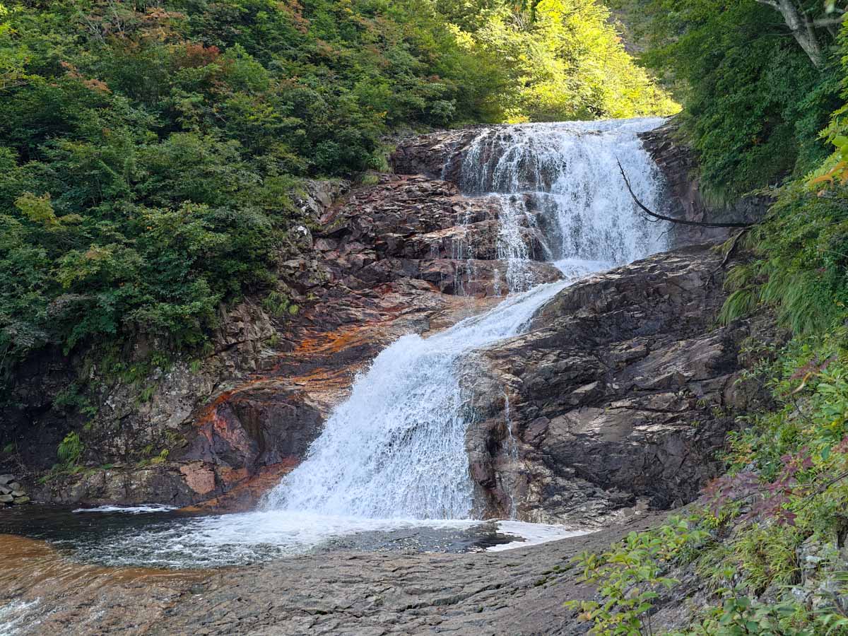 前川大滝沢には、滑床と滑滝の世界観が凝縮されている。滑川大滝はそれ単体でも訪問の価値があると断言できる。下山路も快適かつ、入渓地点すぐ近くに温泉があるなど、至れり尽くせりの間取りも人気を集める理由だろう。